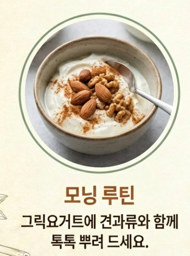 - 모닝 루틴: 그릭요거트에 견과류와 시나몬 가루 톡톡!