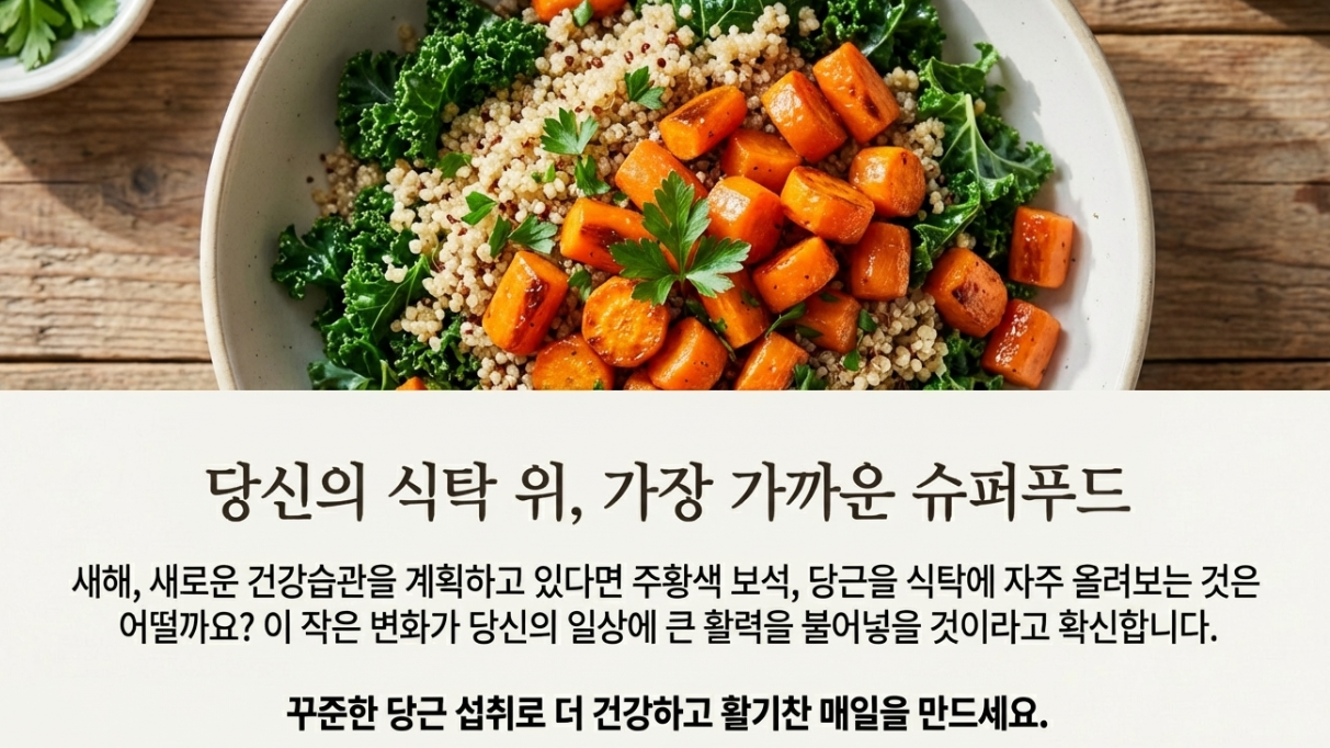 안녕하세요! 바쁜 일상 속에서 우리 몸을 챙기는 것은 언제나 중요한 과제입니다. 오늘 저는 여러분의 건강에 큰 도움을 줄 수 있는 '주황색 보석'에 대해 이야기하려 합니다. 바로 당근입니다. 어릴 적에는 먹기 싫어 도망 다니던 채소였을지 몰라도, 당근이 가진 영양과 효능은 우리가 생각하는 것 이상으로 놀랍습니다.