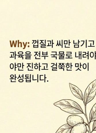 | 특징 | 은근하게 우러나 맑고 깔끔함 | 과육이 완전히 물러져 엄청 진함 |