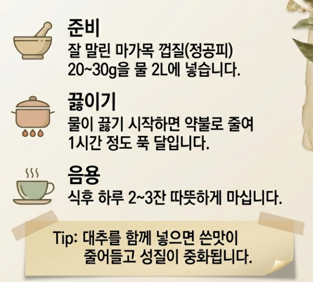 관절부터 뇌 건강까지 챙길 수 있는 고마운 약재, 마가목! 하지만 '과유불급'이라는 말처럼 내 체질에 맞게 적당량을 섭취하는 것이 가장 중요합니다. 오늘 저녁엔 따뜻한 마가목 차 한 잔으로 몸의 피로를 풀어보는 건 어떨까요?