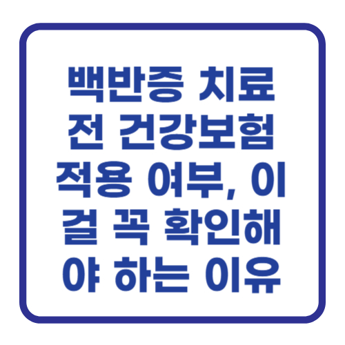 - 단, 전체 피부 면적의 30%를 초과하는 광범위한 백반증은 부위와 상관없이 급여 적용 대상이 될 수 있습니다. (병원마다 해석이 다를 수 있으니 확인 필요)