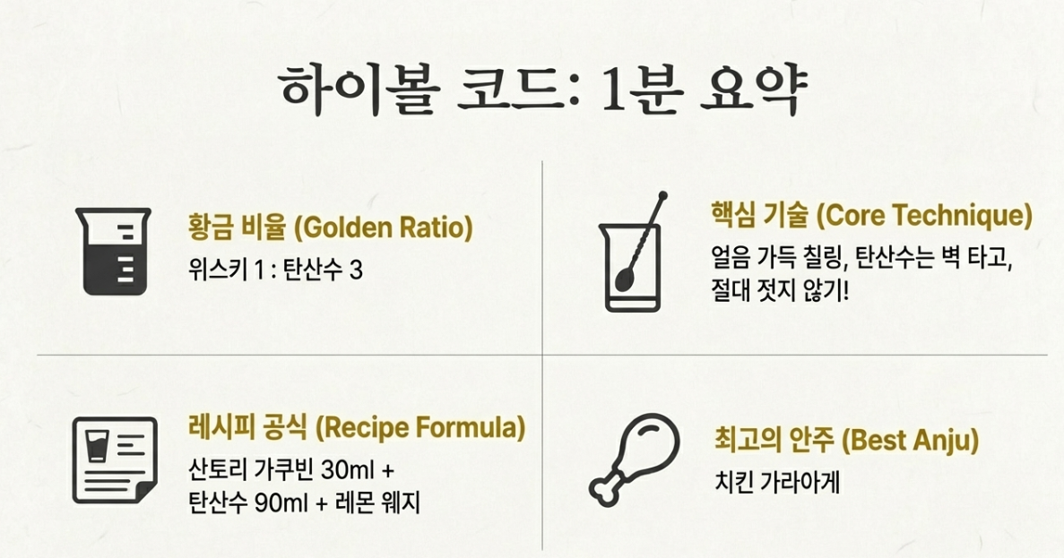 퇴근 후 샤워하고 마시는 시원한 하이볼 한 잔, 상상만 해도 하루의 피로가 싹 풀리는 기분이죠? 저도 요즘 집에서 '혼술'로 위스키 하이볼을 즐기는 재미에 푹 빠졌는데요. 특히 산토리 가쿠빈은 특유의 감칠맛과 청량함 덕분에 하이볼 기주(Base)로 독보적인 인기를 끌고 있죠. 그런데 막상 집에서 만들면 밖에서 사 먹던 그 '짜릿한 맛'이 안 나서 아쉬웠던 적, 다들 있으시죠? 오늘은 여러분의 홈텐딩(Home+Bartending) 품격을 확 높여줄 산토리 하이볼 황금비율 레시피와 궁합 최고인 안주 추천까지 꼼꼼하게 정리해 드릴게요. 이제 우리 집이 힙한 하이볼 맛집이 될 거예요! 💜🍋