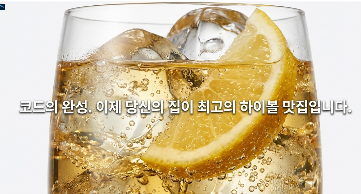 - 온도 (Temperature): 마지막 한 모금까지 시원해야 진짜 하이볼입니다. 잔이 덜 차가웠거나 얼음이 너무 작지 않았는지 체크!