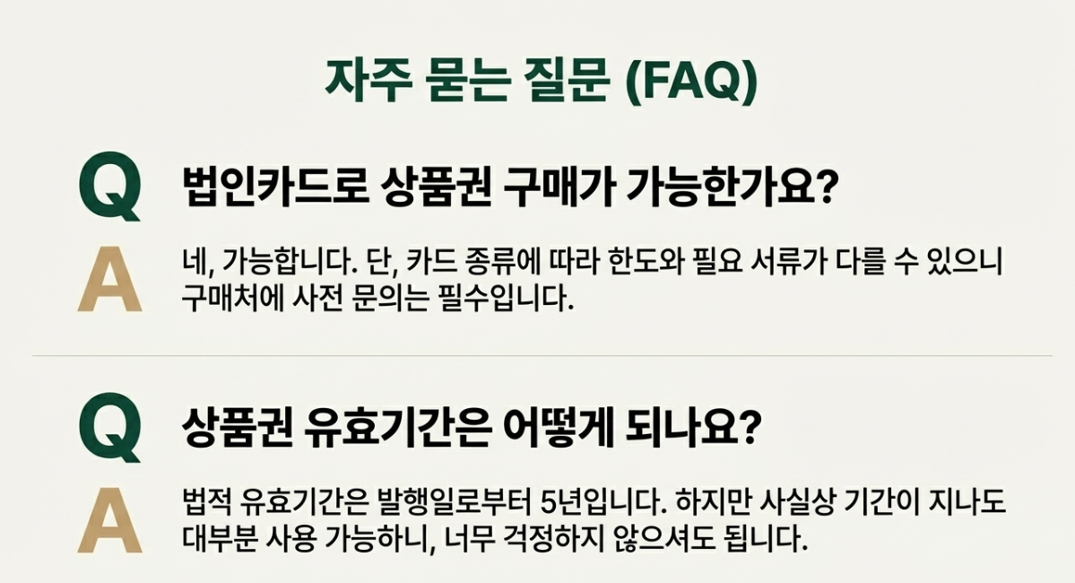 ✅ 고액권 구매의 유리함: 1만 원권보다는 10만 원권, 50만 원권 같은 고액권이 할인 폭이 더 균일하고 거래하기 좋습니다. 거스름돈 환불 규정(60% 이상 사용 시 잔액 현금화)도 고액권일 때 더 유리하게 작용하죠.
