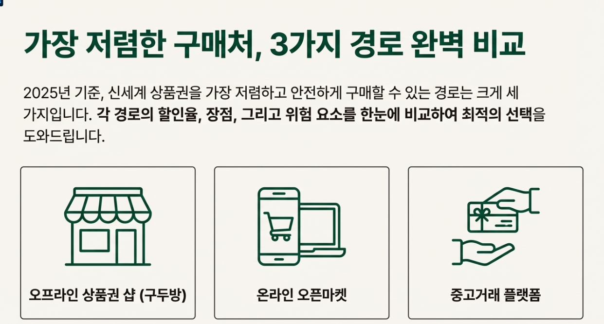 솔직히 말씀드리면, 신세계 상품권은 현금이랑 똑같은데 3~5% 싸게 살 수 있는 방법이 널려 있거든요. 100만 원어치 사면 벌써 5만 원이 굳는 건데, 이건 치킨이 두 마리입니다! 🍗🍗 2025년 현재 가장 안전하고 저렴하게 상품권을 구하는 방법들, 제가 하나하나 친절하게 알려드릴게요. 저와 함께 똑똑한 소비의 세계로 떠나볼까요?
