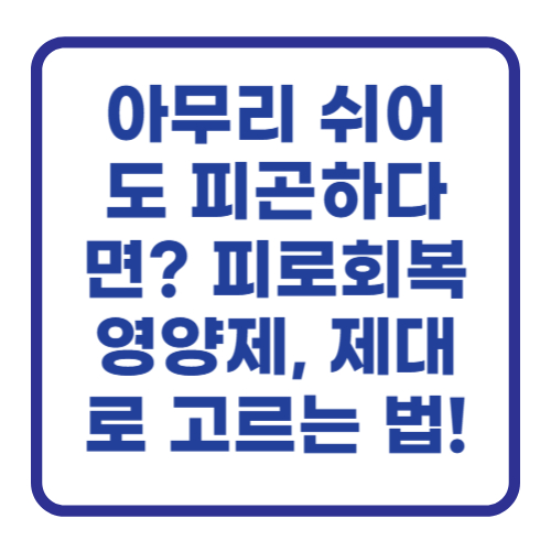 안녕하세요! 혹시 요즘 "아, 진짜 너무 피곤하다…"라는 말을 달고 살고 계시지는 않나요? 저도 얼마 전까지 아무리 푹 자도 개운하지 않고, 매사에 의욕이 없는 상태였어요. 처음엔 그냥 스트레스 때문이겠거니 했는데, 알고 보니 단순한 피로가 아니더라고요. 오늘은 저처럼 만성적인 피로에 시달리는 분들을 위해 그 원인과 함께, 효과를 직접 체감한 피로회복 영양제들을 소개해 드릴게요. 😊