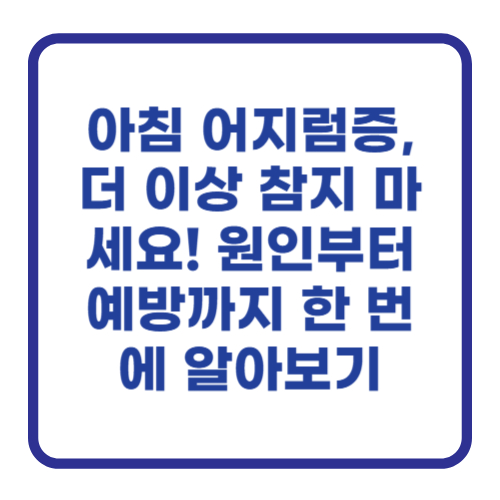 아침 어지럼증 완전 정복!