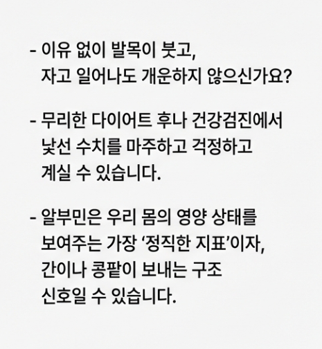 [알부민 영양제 추천] 피로와 붓기가 풀리지 않나요? 간 건강의 핵심인 알부민의 효능부터 2025년 최신 영양제 고르는 기준, 그리고 부작용까지 싹 정리해 드립니다!"자고 일어나도 개운하지 않고
