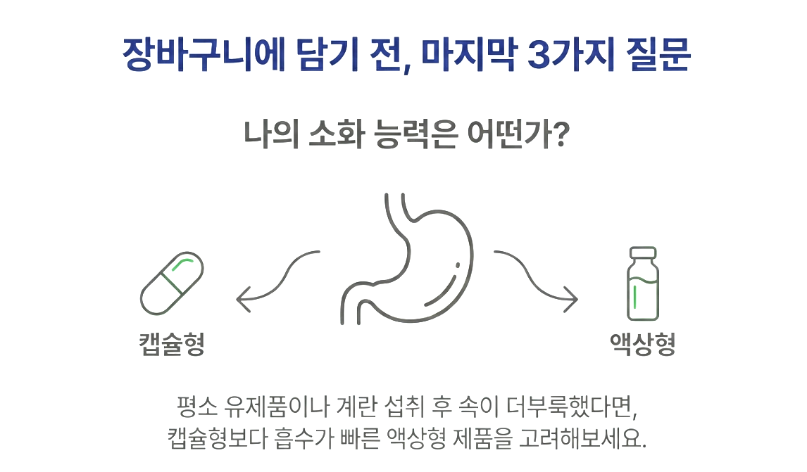 영양제를 장바구니에 담기 전, 마지막으로 스스로에게 질문해 보세요. 이 과정이 없으면 비싼 영양제도 무용지물이 될 수 있거든요.