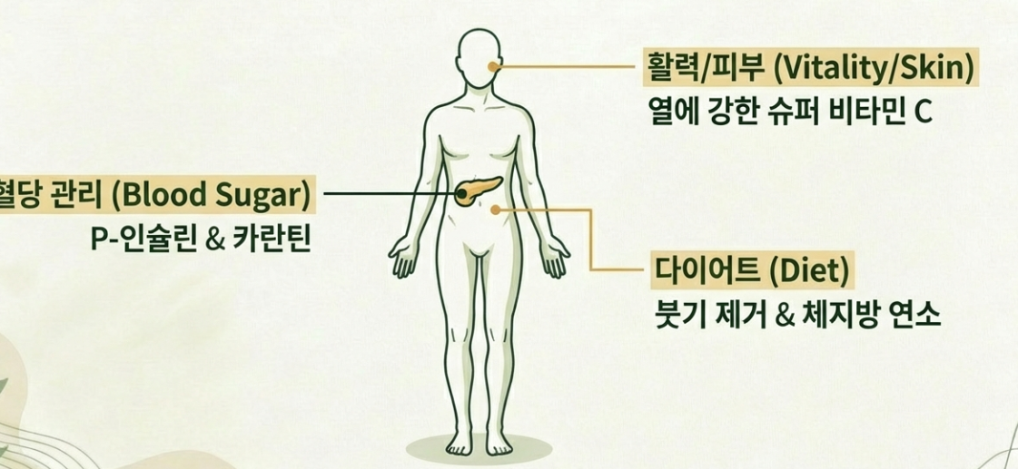 특히 '카란틴(Charantin)' 성분은 췌장을 톡톡 두드려 인슐린 분비를 돕는다고 하니, 당뇨가 걱정되거나 이미 관리 중이신 분들에게는 정말 든든한 지원군이죠. 식후에 따뜻한 여주차 한 잔이면 혈당 스파이크 걱정, 조금은 덜 수 있겠죠?