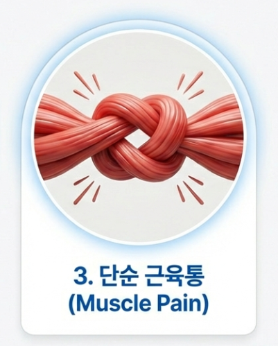 | 단순 근육통 | 특정 자세를 취할 때만 아프거나, 누르면 아픔. 뻐근하고 결리는 느낌. | 휴식 시 호전 |