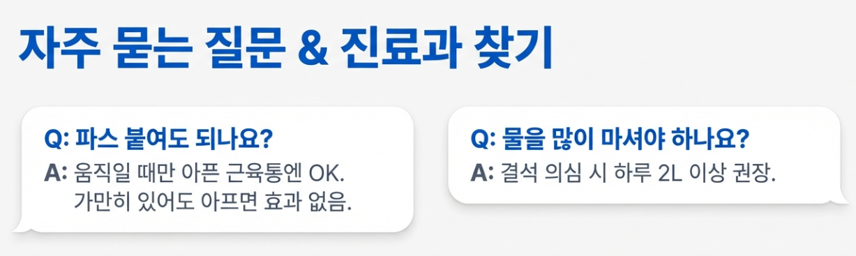 - 파도침: 안 아프다가 갑자기 미친 듯이 아픈 주기가 반복된다면 결석(돌)이 움직이고 있다는 신호입니다.