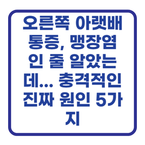 "어? 오른쪽 아랫배가 왜 이렇게 아프지... 혹시 맹장염인가?" 누구나 한 번쯤 이런 걱정 해본 적 있으시죠? 오른쪽 아랫배에 통증이 생기면 자연스럽게 '맹장염(정확한 명칭은 충수염)'을 떠올리게 되는데요. 물론 가장 흔한 원인 중 하나인 건 맞지만, 생각보다 다양한 질환이 비슷한 위치에 통증을 유발할 수 있다는 사실, 알고 계셨나요? 😊