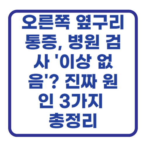 "오른쪽 옆구리가 콕콕 쑤시고 아파서 병원에 갔는데, 피검사, 엑스레이, CT까지 찍어도 아무 이상이 없대요." 이런 경험, 혹시 있으신가요? 몸은 분명 아픈데 원인을 알 수 없으니 정말 답답하고 불안하셨을 거예요. 혹시 큰 병인데 놓친 건 아닐까 걱정도 되고요. 저도 비슷한 경험이 있어서 그 마음 충분히 이해합니다. 오늘은 이렇게 검사로는 잘 발견되지 않지만, 우리를 괴롭히는 '오른쪽 옆구리 통증'의 숨은 원인들에 대해 속 시원하게 이야기해 보려고 해요. 😊