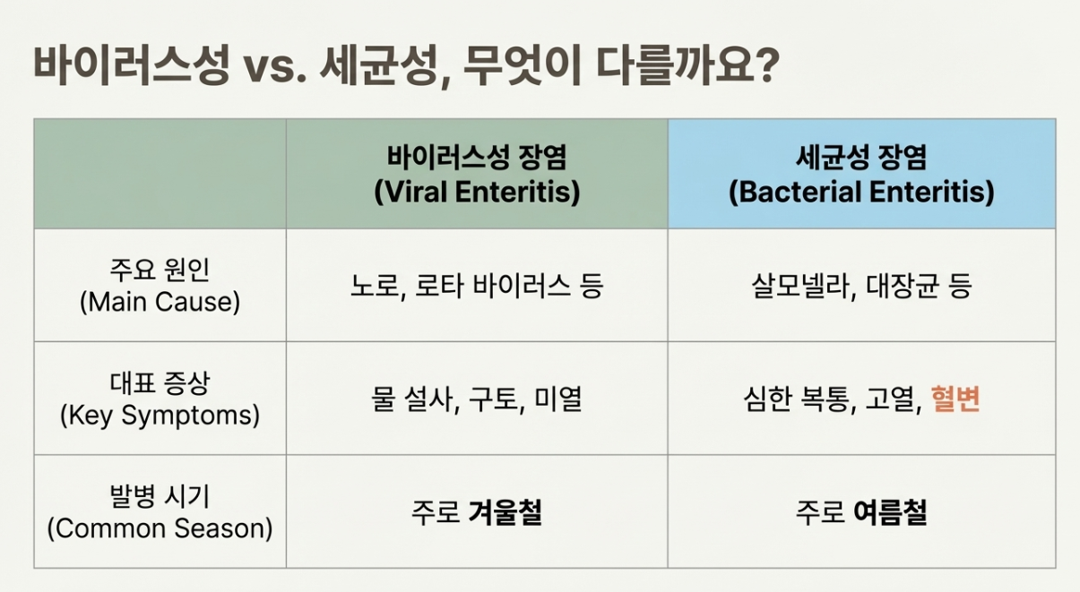 바이러스성 vs 세균성 장염 비교