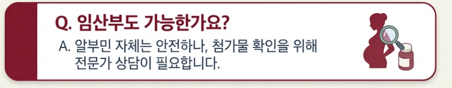 - 알레르기 반응: 계란이나 우유 알레르기가 있는 경우, 알부민 원료(난백 등)에 따라 두드러기나 가려움증이 나타날 수 있어요.