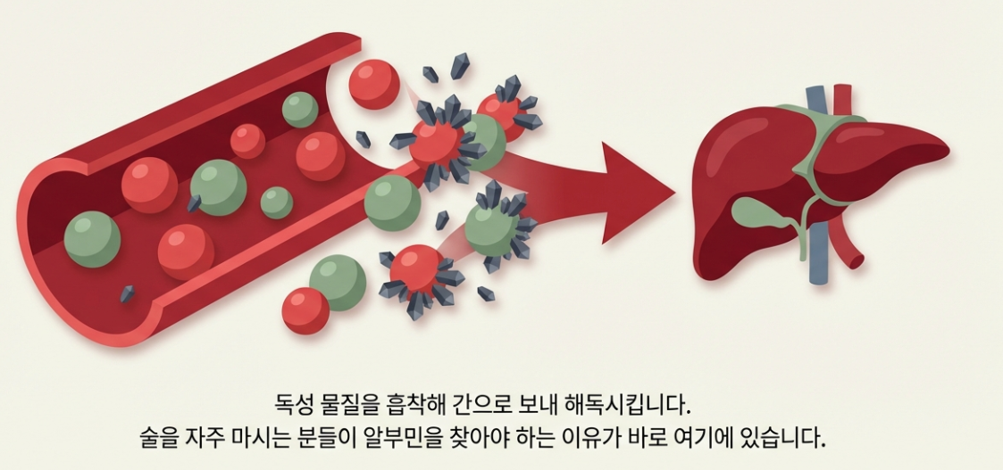 - 🛡️ 간과 신장 보호: 독성 물질을 흡착해서 간으로 보내 해독시키는 역할을 해요. 술 자주 드시는 분들이 알부민을 찾는 이유죠!