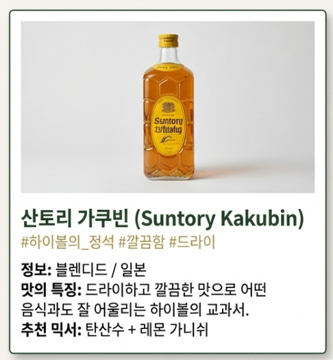 - 깔끔하고 시원한 맛이 좋다면? → 산토리 가쿠빈 (탄산수 조합 최강)