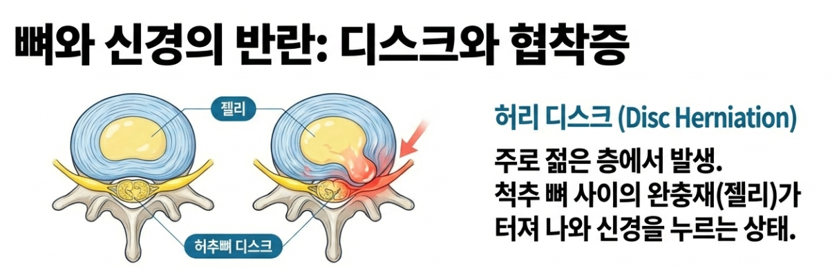 2. 뼈와 신경의 문제: 디스크와 협착증 🦴