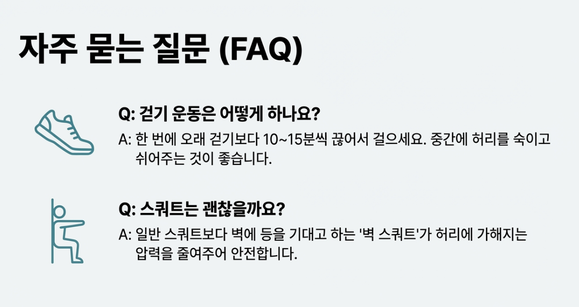 - 코어 강화: '골반 기울기 운동'으로 허리를 지지하는 속근육을 키우세요.
