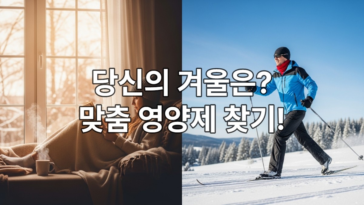 찬 바람 부는 2025년 겨울, 혹시 무기력하거나 으슬으슬하신가요? 실내에서 주로 활동하는 당신 혹은 겨울 스포츠를 즐기는 당신, 각자의 라이프스타일에 꼭 맞는 겨울 건강 관리법과 영양제 추천 가이드를 준비했습니다. 지금 바로 당신의 유형을 확인하고, 2025년 겨울을 더욱 활기차게 보내세요!