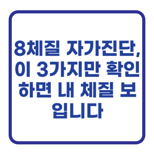 오늘은 8체질 자가진단에 대해 알아봤습니다. 체질을 아는 것은 나를 가두는 틀이 아니라, 나를 더 자유롭고 건강하게 만드는 지침서가 되어줄 거예요.