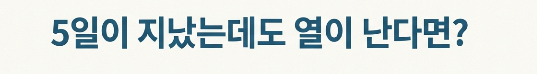 즉, 약을 먹지 않고도 체온이 정상으로 돌아온 뒤 하루 이틀은 더 지켜봐야 안전하다는 뜻이에요. 만약 5일이 지났어도 열이 난다면? 당연히 계속 쉬어야 합니다. '열'이 가장 중요한 신호라는 점, 꼭 기억해 주세요!